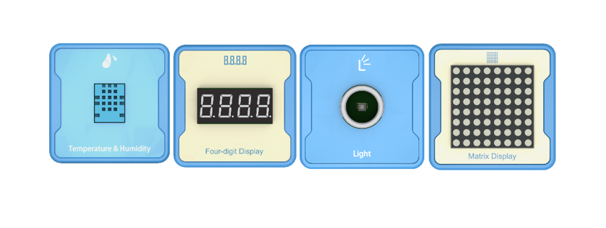 Hardware: SMART Code kit: emperature & Humidity, four digit digital tube, Light, Matrix Display Dot matrix LED.
